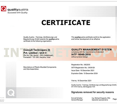 Consult Techniques Products has been one of the leading manufacturers and suppliers of moulded plastic components.